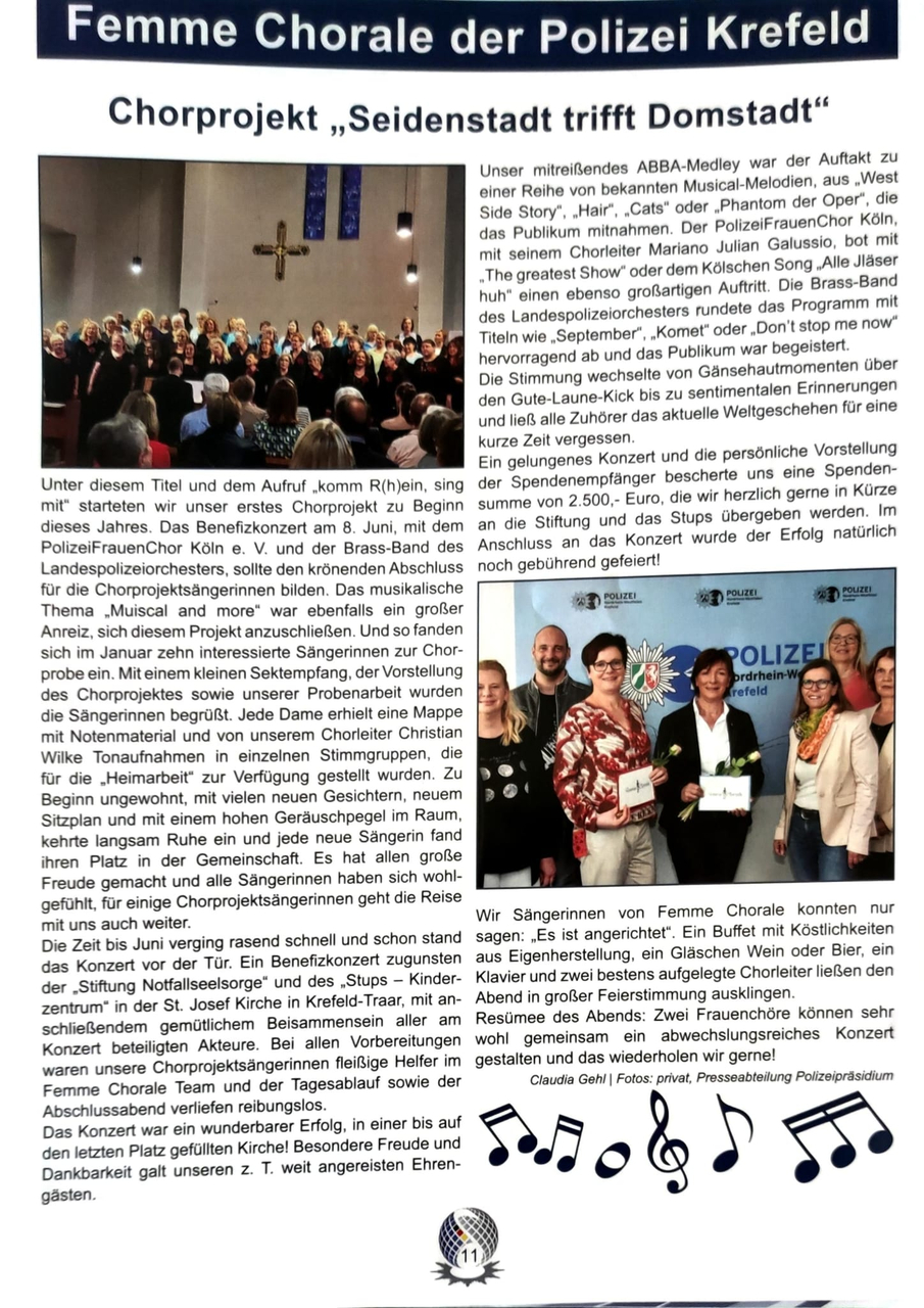 24.08.2022 | Polizeichor Femme Chorale spendet für kranke Kinder | Artikel öffnen |