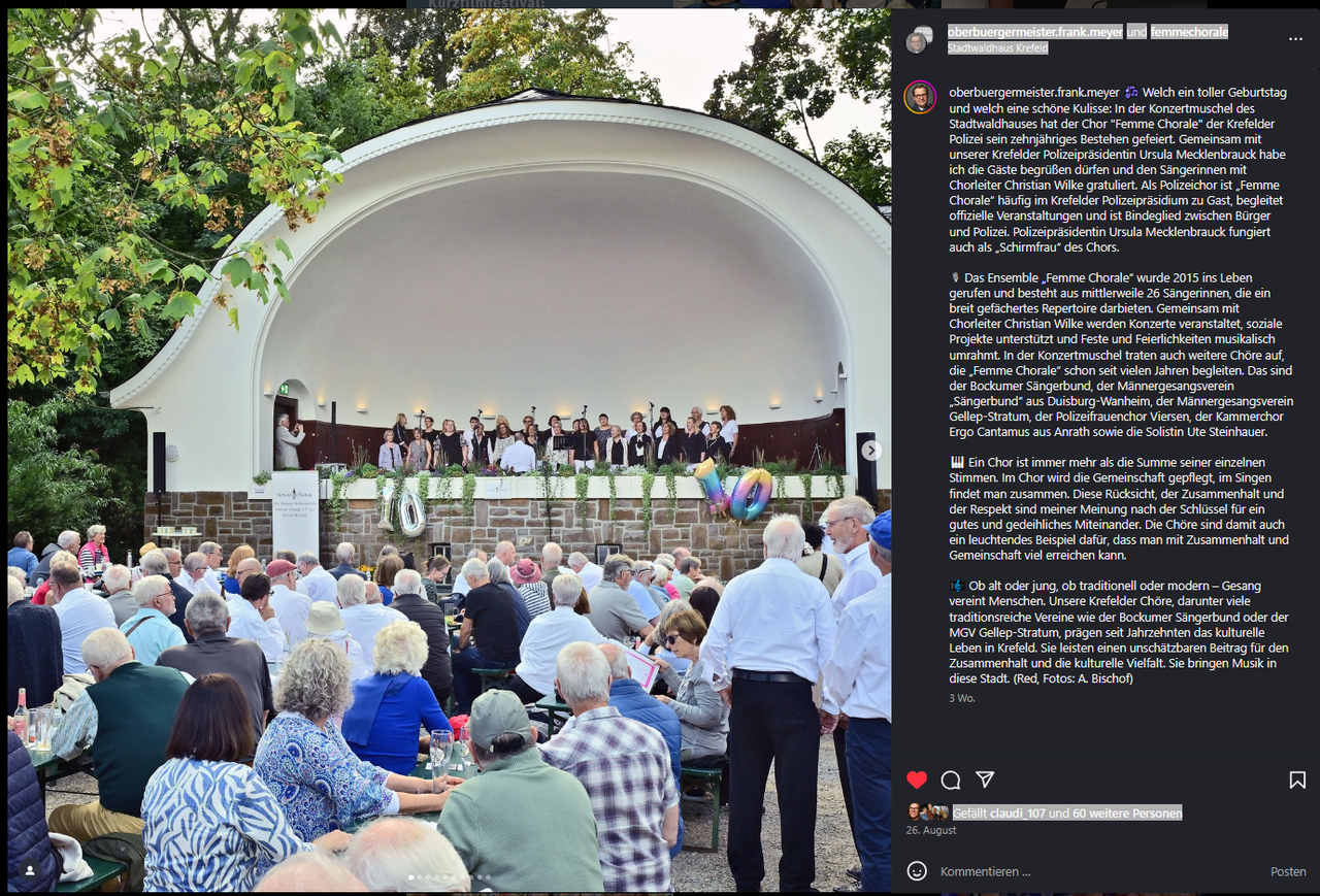 26.08.2025 | Instagram Post von Oberbürgermeister Frank Meyer zum Konzert in der Konzertmuschel | Artikel öffnen |